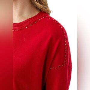 Bold red DKNY sweater with stylish stud accents along the neckline. NWT Size M