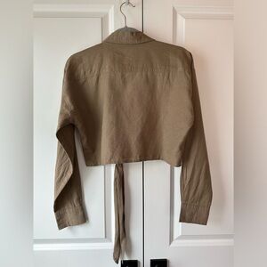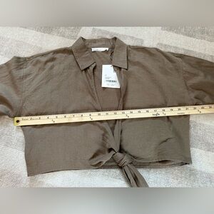 OAK + FORT Women’s Linen Blend Front Tie Shirt Taupe NWT (Size S)