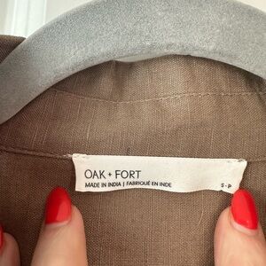 OAK + FORT Women’s Linen Blend Front Tie Shirt Taupe NWT in Size Small. Brand new with tags, no flaws to note. Super cute just haven’t gone to grab this.