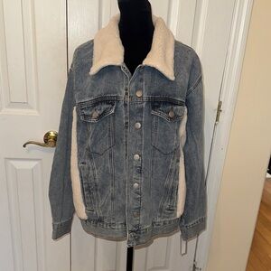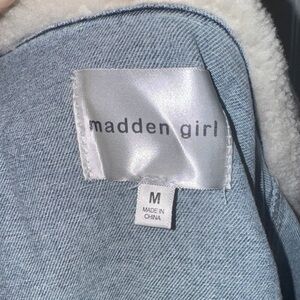 Madden Girl Blue Denim Jacket with Cream Sherpa Lining
