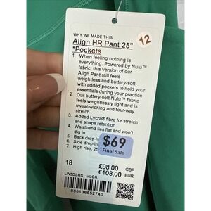 Lululemon Align HR Pant 25" Pockets Nulu Size 18 Maldives Green (Slight Flaw)
