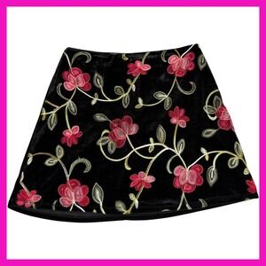 Black Velvet Mini Skirt Embroidered Floral Red Pink Rose Y2K Party Club