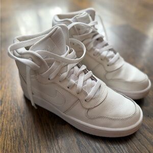Classic high-top design. All-white leather finish. Perfect for casual wear.