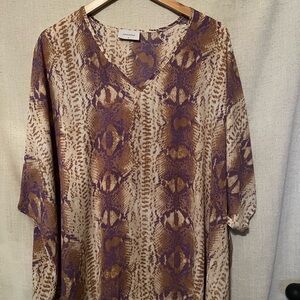 Adrienne V-Neck Snake Print Blouse - Purple and Tan Size M