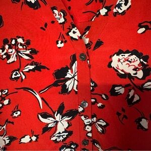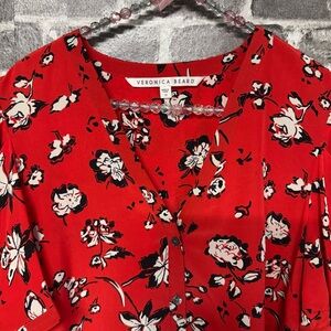 Veronica Beard silk garland blouse Red Puff Sleeve Ruched button down