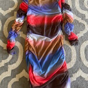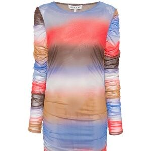 Munthe's knee-length Madagascar dress, featuring beautiful ombre stripes in an autumnal colorway, super flattering draping throughout the body and ruching at the sleeves. Munthe no longer makes this dress, so it's a rare find. Photos do not do justice to these colors, they're even more saturated and vibrant in person! The fabric tag has been removed and there's a small mark on the brand tag, but aside from that it's in perfect condition. Size listed is FR 36 / US 4, but 4 is my normal dress size now and unfortunately this dress is too big for me. The material has a TON of stretch, so take that under consideration when looking at the measurements.
