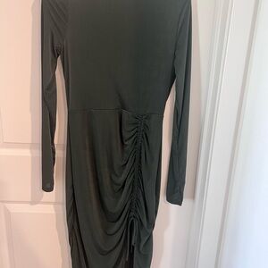 Elegant Forest Green Ruched Dress Size Large