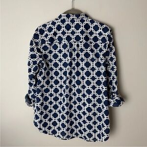 St. John's Bay Shirt Size Medium Top 3/4 Roll-Tab Sleeves Cotton Blue White Lightweight
