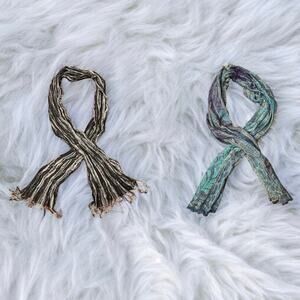Lot of 2 Fashion Scarfs Black White Stripe Blue Paisley Brand New Never Worn