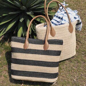 Striped Synthetic Straw Women's Tote Light Weight Vaction Shoulder Handbag