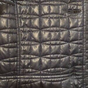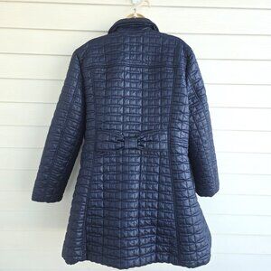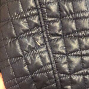 This is a nice Kate Spade lightweight yet warm quilted puffy jacket / coat. It is dark blue and has just been freshly washed so it is ready to wear. Tagged a size XXL. The inside lining is light pink so it is very cute! Machine washable. 100% Polyester. Coat is in gently used condition. There are 2 issues that were my own darn fault. You can see in the last 2 photos. I was cutting off a loose thread and accidently cut a tiny spot in the top layer of the coat. You can see it in the center of the photo. This is under the right arm more towards the back side. It is about a half inch. The other spot in on the shoulder which originally had a tag up there. I pulled the tag and it took a small bit of the seam thread out. See 2nd to last photo. I thought I saw one square of quilting that had a spot of thread missing but I cannot find the spot again. I just took a close up of what the quilting looks like and the area where I THOUGHT it was. That is the 3rd to last photo. Anyway, offering the coat at a great price due to the small issues that were my fault.