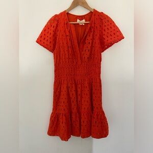 Anthropologie The Somerset Mini Dress: Eyelet Hot Bright Coral Orange