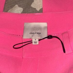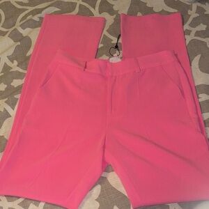 Beautiful pink trousers with a sleek design. Straight leg. Perfect for adding a pop of color to any outfit. Brand new. Slight smudges of dirt on hem of pant legs from store try ons. Will come out in wash.