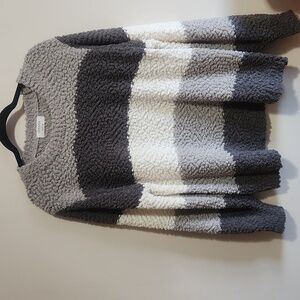 EUC Zenana Grey Striped Popcorn Sweater