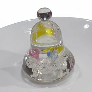 Joe St Clair Art Glass Bell Shape Paperweight Pink Yellow Blue Flowers Greenery