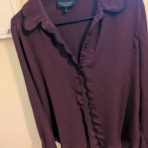 Elegant burgundy blouse by Laundry By Shelli Segal. Rich color and stylish design. Sheer, silky and soft.