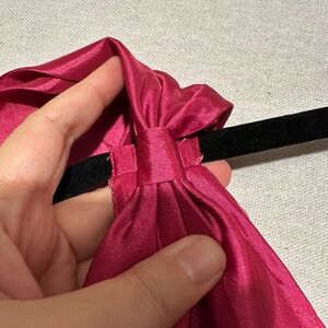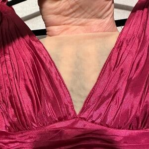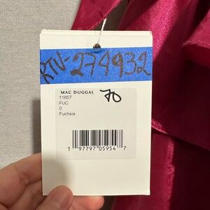 leena for Mac Duggal Oversized Bow Deep V Ruffle Mini Dress in size O. Has its tags, but was definitely worn because it was altered. Bows were removed, straps were shortened, and mesh netting was put into the V-neck. Was then returned in that shape, as you can tell from the tag.