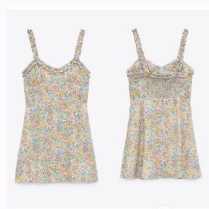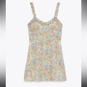 Zara Mini Floral Ruffle Strap Sweetheart Neckline Colorful Dress