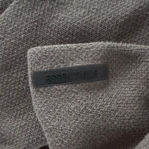 Soft charcoal gray knit sweater with subtle 'ESSENTIALS' label.
