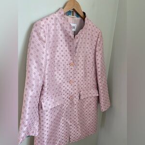 RIANI Pink Geometric Jacquard Mid-Length Coat - Size 8