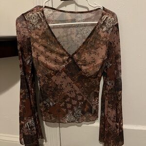 Sheer Paisley/70s bell-sleeve top - NWOT | sz S