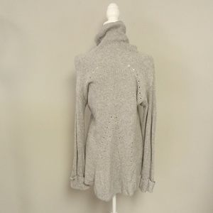 Chelsea 28 Women's Gray Hi- Low Turtleneck Sweater Size Large Cuffed at Wrists Eyelet Pattern Throughout