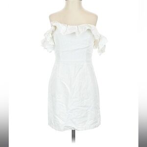 Superdown White Mini Dress Ruffle Off Shoulder SMALL Bachelorette Revolve