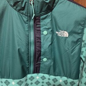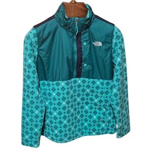 North Face Womens Tundra Teal Green Diamond Design Fleece Size Large Pre-owned Chest Measurement is 23"