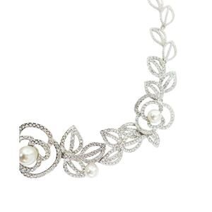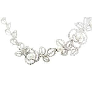 Elegant Rhinestone & Acrylic Pearl Silver Floral Necklace