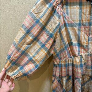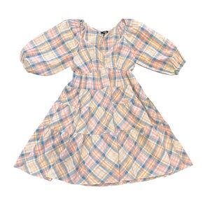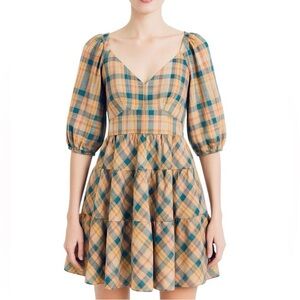 Drew by Anthropologie Plaid Ruffle Cottagecore Mini Dress with V-neckline Size S