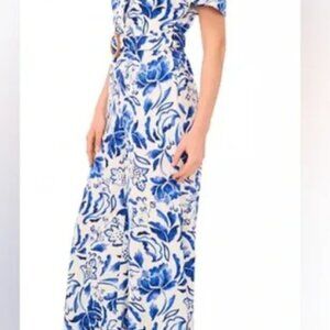 1.STATE Blue White Floral Wide Leg Jumpsuit Size Large