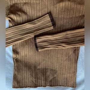 Forever 21 small ribbed mock neck long sleeve! Great quality and perfect for nights out. Love the color and dark brown detail on sleeves and neck 🤩