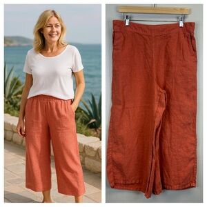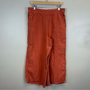 Tahari Women's Terracotta Wide Leg Cropped 100% Linen Pants XL Beach Vacation