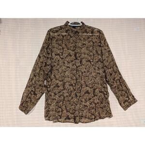 Vintage Burberrys Sheer Leopard Print Button-Up Shirt 100% Silk Womens Size 12