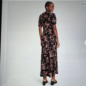 NWT A New Day Maxi Dress Womens XL Floral Black/Brown puff sleeve Mermaid Deep V