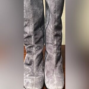 GUVC Vtg Newport News Leather Gray Suede Knee-High Boots Block Heel Women’s 7B