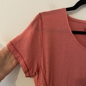 Fjallraven Womens Abisko Cool Striped T-Shirt Red XL Logo Basic V-Neck Gorpcore