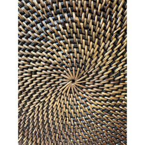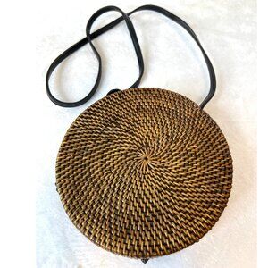 Crossbody Canteen Round Purse Woven Rattan Black Strap Boho Button Snap Roomy