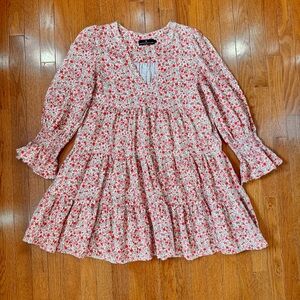*no size tag but measurements fit most consistently with a size small when comparing to other listings of this top. This likely fits a small with an oversized loose fit, a medium for relaxed flowy fit, or a large with still a flowy fit.