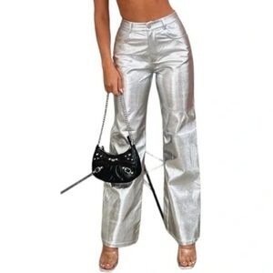 200. NWT WAYF Metallic Silver Faux Leather Pants Small