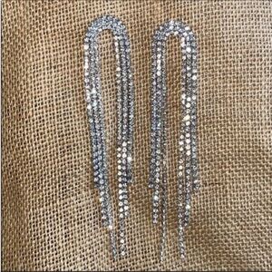 Rhinestone Crystal Earrings Silver Plated Dangle Tassel Waterfall Asos U…