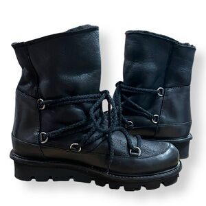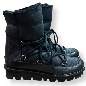 PATRIZIA BONFANTI Black Leather Lace Up Boot Fleece Lined Size 39