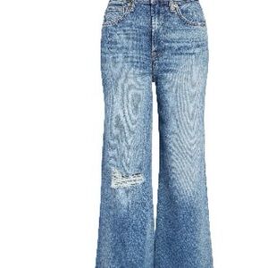 Stylish blue jeans from 7 For All Mankind. Features a classic design with a luxe vintage feel. Great stretch. Wide leg with raw edge hem.