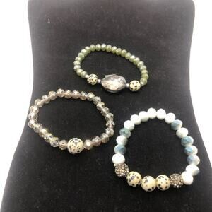 3 Set Gemstone Speckled Sparkling Beads Multi Size Gemstones Stretchy Bracelets