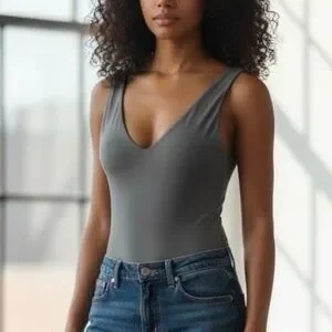 gray bodysuit V-neck. Size S. Great condition.