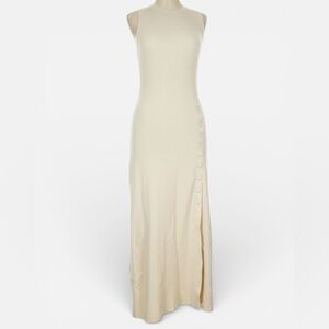 Sézane Harena Ribbed Knit Midi Sweater Dress in Cream