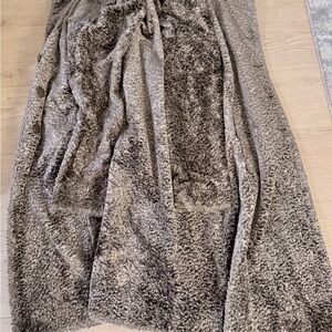 Stay warm and stylish with this cozy brown faux fur coat. Perfect for chilly days, this coat offers both comfort and elegance. Damage to lining and pockets. Over 20 years old