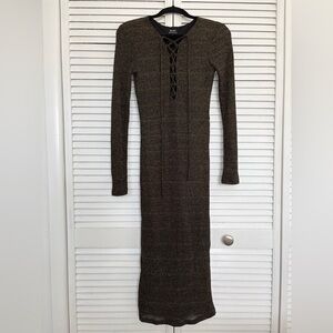 Bardot for Anthropologie | Romeo Lace-Up Midi Dress | Black & Gold | Size 8