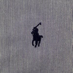 Keywords: Vintage, Ralph Lauren shirt, mens button down shirt, long sleeve shirt, pinstripe shirt, purple shirt, cotton shirt, Yarmouth shirt, preppy style, classic, casual shirt, embroidered pony