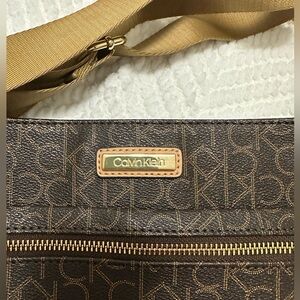 Calvin Klein Brown Logo Crossbody Bag Double Zip Adjustable Strap